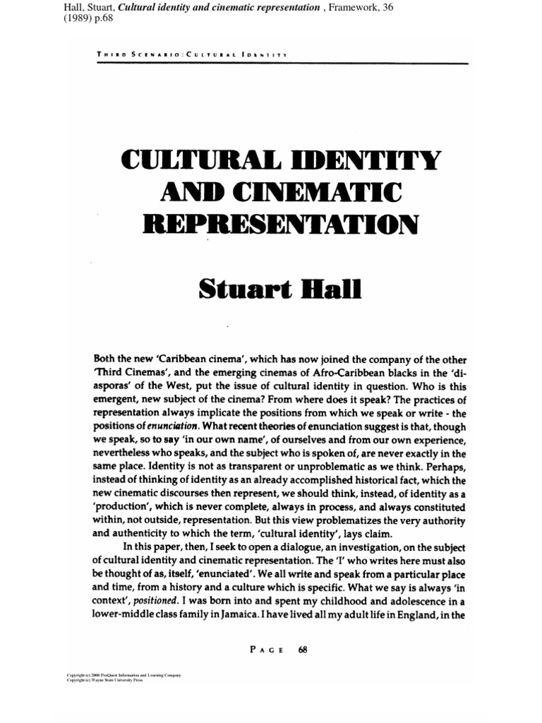 Cultural Identity Cinematic Representation Stuart Hall
